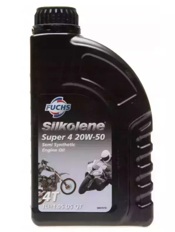 - Fuchs SILKOLENE 4T Super 4 20w50-олива призначенна для чотиритактних двигунів,відповідає вимогам JASO: MA2 і API: SL, спеціальна технологія MC-SYN дозволяє наблизитися до властивостей синтетичного масла, відхиляючись від мінеральних параметрів, призначений для користувачів, які віддають перевагу туристичному та міському стилю водіння, підготовлений для міських, туристичних мотоциклів і мотоциклів ендуро, з рідинним або повітряним охолодженням, відповідає вимогам сучасних і менш просунутих приводів, зменшує тертя і забезпечує чистоту в двигуні завдяки міцній масляній плівці, полегшує запуск двигуна при низьких температурах, забезпечує максимальний захист компонентів двигуна.