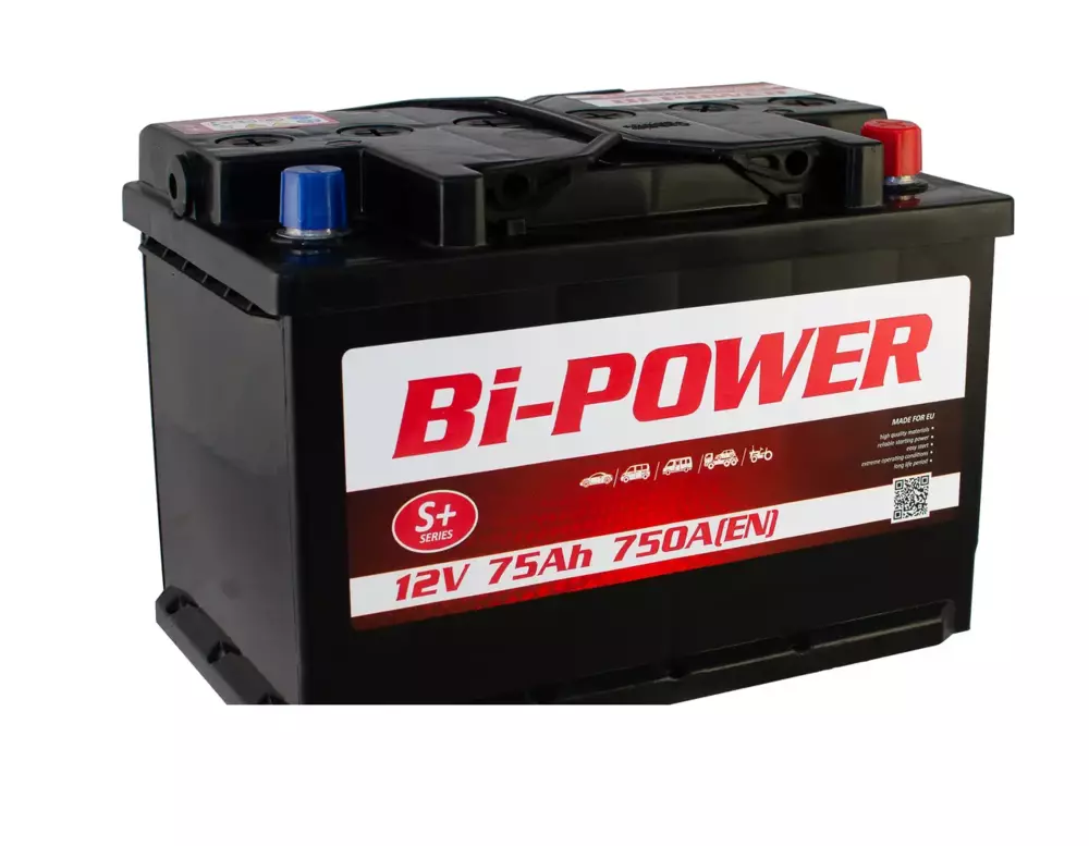 - Акумулятор Bi-Power 6СТ- 75Ah 750A (EN) 12V Euro R[+] -