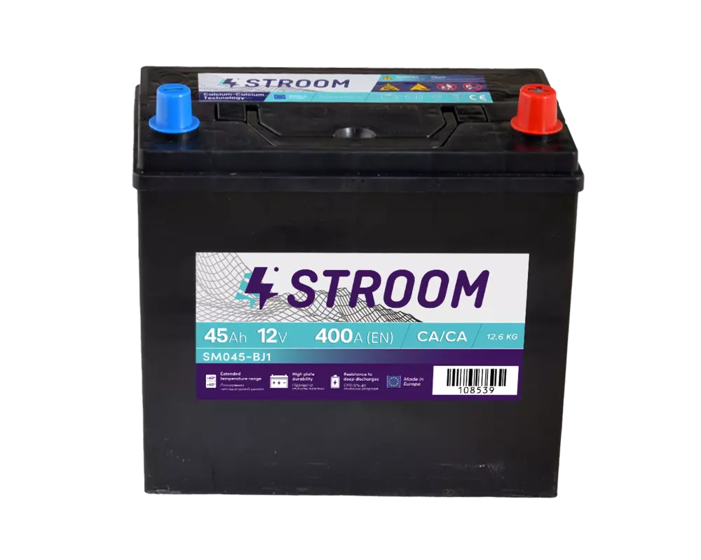 - Акумулятор STROOM Asia (NS60) 45Ah 400 А 12V За рахунок спеціальної конструкції пластин та унікальної формули активної маси забезпечуються збільшення міцності внутрішньої конструкції АКБ та високі пускові характеристики.