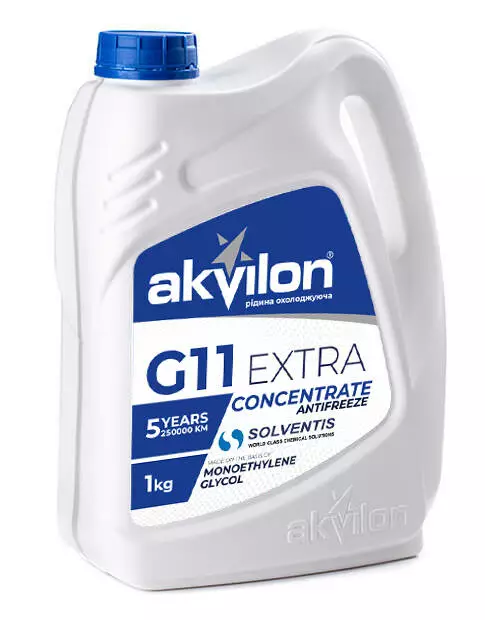 Охолоджувальна авторідина «Антифриз-концентрат EXTRA» G11 (зеленого кольору), виготовлена на основі моноетиленгліколю та пакету присадок Британо-Бельгійської компанії «SOLVENTIS», що відповідає більшості міжнародних та європейських стандартів. Призначена для охолодження двигунів внутрішнього згоряння легкових та вантажних автомобілів. Забезпечує ефективну роботу системи охолодження та захищає від корозії, кавітації та відкладень у охолодних каналах двигуна. Має тривалий термін експлуатації. Змішується з антифризом типу G11, G11+ та охолоджувальними рідинами марки «Тосол».Не містить амінів, боратів, нітритів, фосфатів, силікатів. Перед використанням слід промити систему охолодження. При розведенні концентрату дистильованою водою у співвідношенні 1: 1 - отримуємо авторідину охолоджувальну з температурою кристалізації - 35С. - Технічні характристики