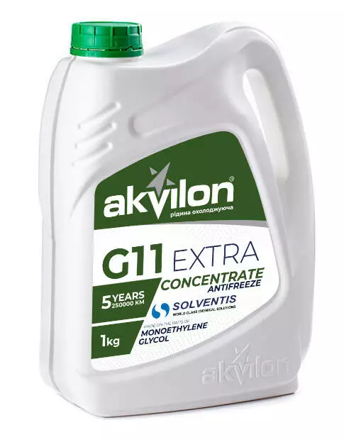 Охолоджувальна авторідина «Антифриз-концентрат EXTRA» G11 (зеленого кольору), виготовлена на основі моноетиленгліколю та пакету присадок Британо-Бельгійської компанії «SOLVENTIS», що відповідає більшості міжнародних та європейських стандартів. Призначена для охолодження двигунів внутрішнього згоряння легкових та вантажних автомобілів. Забезпечує ефективну роботу системи охолодження та захищає від корозії, кавітації та відкладень у охолодних каналах двигуна. Має тривалий термін експлуатації. Змішується з антифризом типу G11, G11+ та охолоджувальними рідинами марки «Тосол».Не містить амінів, боратів, нітритів, фосфатів, силікатів. Перед використанням слід промити систему охолодження. При розведенні концентрату дистильованою водою у співвідношенні 1: 1 - отримуємо авторідину охолоджувальну з температурою кристалізації - 35С. - Технічні характристики