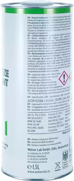 Антифриз Concentrate WG11 Green 1.5л WOLVER Німеччина