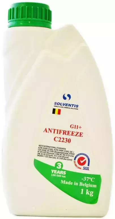 Антифриз Solventis -37 ( 1кг) зелений G11+ (Бельгія)-застосовується для всіх сучасних автомобілів із 2000-х років випуску. Не замерзає до мінус 37 градусів за Цельсієм.