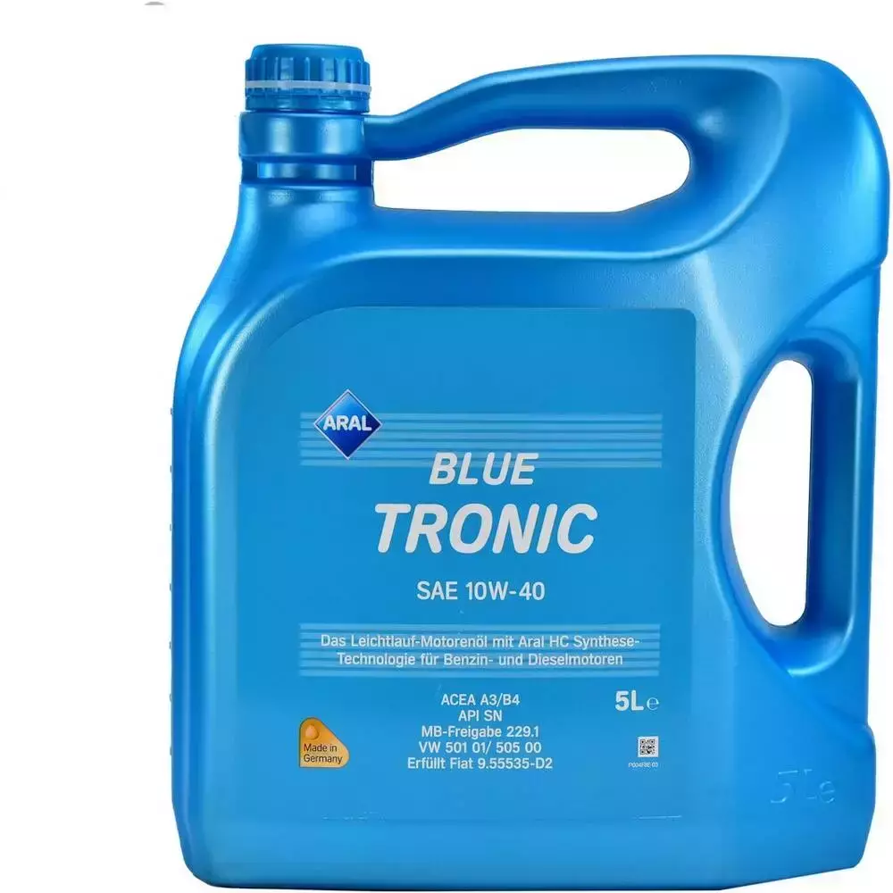 - BlueTronic 10W-40 - одне з найпопулярніших масел Aral. Воно знаходиться у виробничій програмі з 90-х років і раніше називалося Aral Basic Tronic 10W-40. Споживачі цінують цей продукт за виняткову чистоту двигуна, що неодноразово переконувалися за довгі роки застосування, а також максимальне продовження ресурсу будь-якого мотора. Олія Aral BlueTronic 10W-40 відповідає вимогам великої кількості бензинових та дизельних двигунів старшого покоління, в основному до 2004 р.в. Відрізняється чудовим співвідношенням ціни та якості.