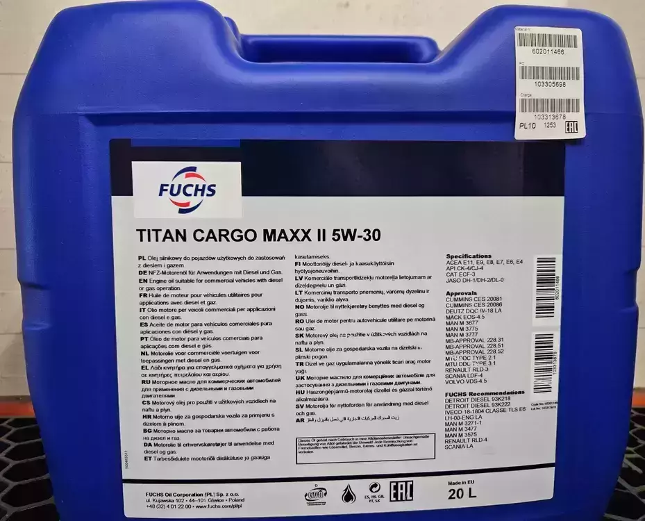 Моторна олива Fuchs Titan CARGO Maxx II 5w-30 XTL 20л безкоштовна доставка по Україні