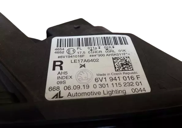 Ліхтар правий передній оригінал 6V1941016F Full Led Fabia III рестайл 2018-2021 р.в. справний,гарний стан (див.фото),европейка,всі кріплення цілі,незначні сліди експлуатації.Важливо:фото може носити суто інформаційний характер якщо на складі два і більше ліхтаря за таким номером.Уточнюйте в телефонному режимі