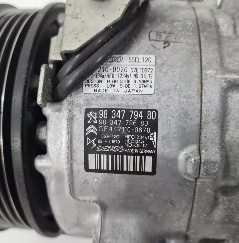 Компресор кондиціонера оригінал 9834779480 Peugeot 3008 II 1.5 BLUE HDI справний. Без експлуатації в Україні. Гарантія 7 днів по отриманню на встановлення/тестування