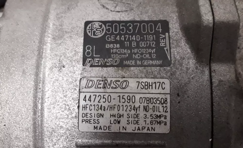 Компресор кондиціонера оригінал 50537004 Alfa Romeo Stelvio справний Denso