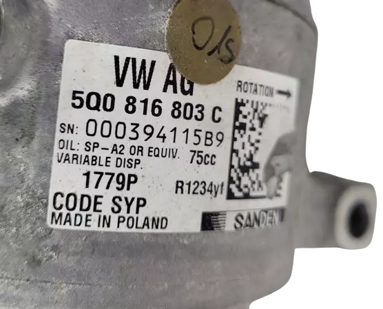 Компресор кондиціонера оригінал 5Q0816803C Audi A1 VW Polo V Tiguan II Golf VII Passat B 7 Seat Ibiza IV справний.Без експлуатації в Україні.Гарантія 7 днів по отриманню на встановлення/тестування
