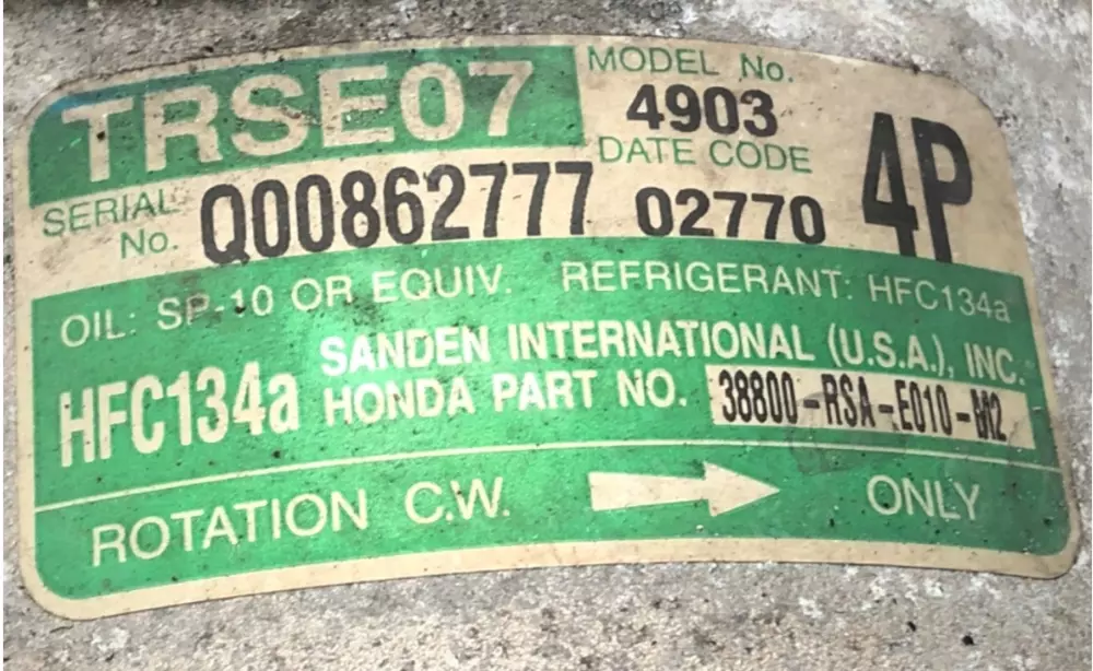 Компресор кондиціонера оригінал 38800-RSA-E010-M2 Honda Civic VIII CR-V II справний Sanden