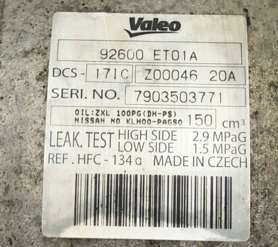 Компресор кондиціонера оригінал 92600ET01A Nissan Sentra VI (B16) Qashqai J11 2006 - 2013 р.в. справний Valeo