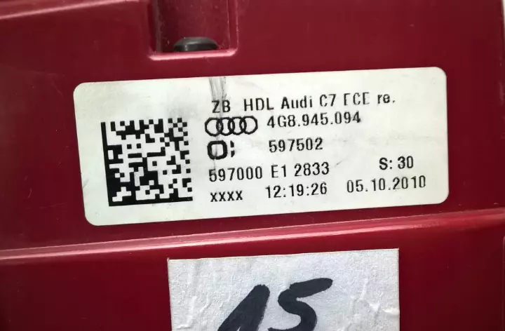 Ліхтар задній (стоп) лівий внутрішній 4G8945094 Audi A7 4G Стан: Вживаний, оригінал. Без сколів, глибоких подряпин та ознак запотівання. Усі кріплення (вуха) цілі. Чому це важливо: Це оригінальна європейська оптика. На відміну від дешевого Китаю, цей ліхтар не вигорить на сонці через рік, не пожовкне і ідеально стане в зазори кузова. Доставка: Пряма поставка з Європи за 3-5 днів. Гарантія: 7 днів на перевірку герметичності та працездатності.