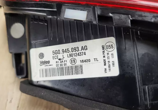 Ліхтар задній (стоп) лівий внутрішній 5G0945093AG VW Golf 7 VII хетчбек, рестайлінг Стан: Вживаний, оригінал. Без сколів, глибоких подряпин та ознак запотівання. Усі кріплення (вуха) цілі. Чому це важливо: Це оригінальна європейська оптика. На відміну від дешевого Китаю, цей ліхтар не вигорить на сонці через рік, не пожовкне і ідеально стане в зазори кузова. Доставка: Пряма поставка з Європи за 3-5 днів. Гарантія: 7 днів на перевірку герметичності та працездатності.