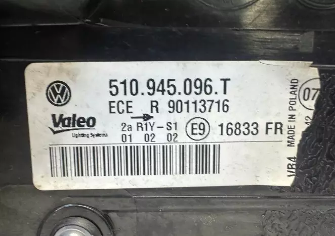 Ліхтар задній (стоп) правий зовнішній 510945096T VW Golf Sportsvan Стан: Вживаний, оригінал. Без сколів, глибоких подряпин та ознак запотівання. Усі кріплення (вуха) цілі. Чому це важливо: Це оригінальна європейська оптика. На відміну від дешевого Китаю, цей ліхтар не вигорить на сонці через рік, не пожовкне і ідеально стане в зазори кузова. Доставка: Пряма поставка з Європи за 3-5 днів. Гарантія: 7 днів на перевірку герметичності та працездатності.