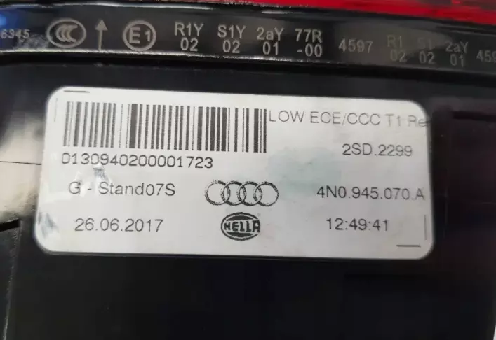 Ліхтар задній (стоп) правий зовнішній оригінал 4N0945070A Audi A8 D5 рестайлінг, справний, гарний стан, европейка, всі кріплення цілі, незначні сліди експлуатації.