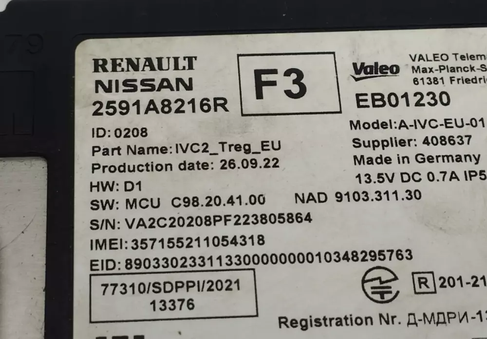 Модуль управління комфортом оригінал 2591A8216R Renault Megane V E-Tech справний, відмінний стан Valeo