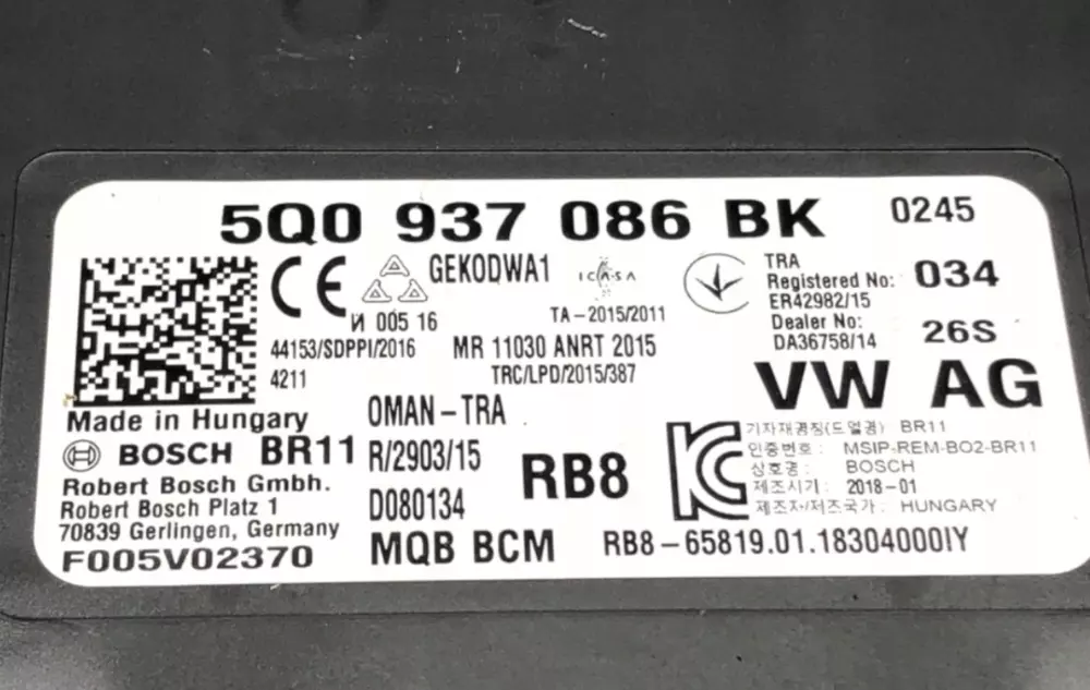 Модуль управління комфортом оригінал 5Q0937084AC VW Golf VII Passat B8 Skoda Octavia III справний, відмінний стан Bosch