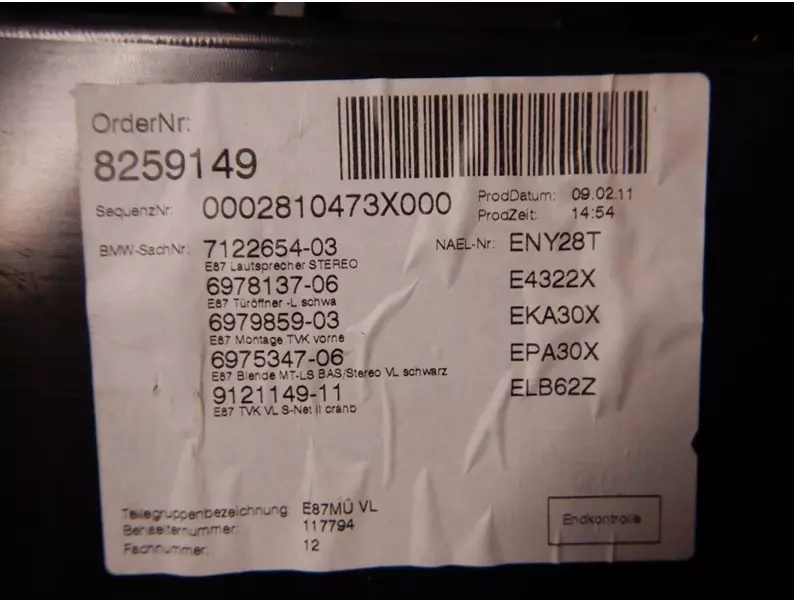 Обшивка бокової двері (карта) ліва передня 712265403 BMW 1 E87 2011, BMW