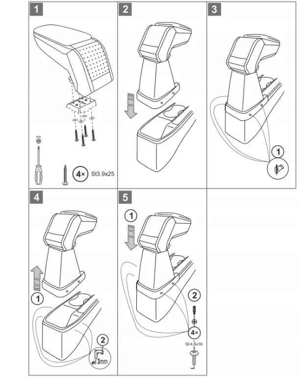 Підлокітник Citroen C3 Aircross з 2021- р. в. чорний екошкіра, пластик ABS + монтажний комплект НОВИЙ