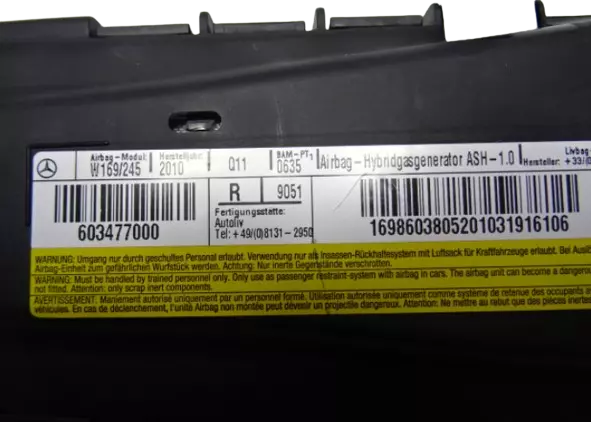 Подушка безпеки бокова правого переднього сидіння оригінал 603477000 Mercedes A-class W169 B-class W245 відмінний стан