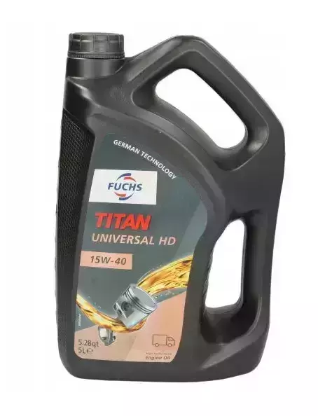 - Fuchs Titan Universal HD 15w40-Всесезонна універсальна моторна олива для змішаного автопарку. Забезпечує високу ефективність роботи дизельного двигуна з турбонаддувом та без.
