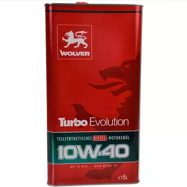 - WOLVER Turbo Evolution 10W-40 високоефективна напівсинтетична моторна олива нового рівня для сучасного автотранспорту та стаціонарних двигунів, що є продуктом еволюції оливи класу API CI-4 (у редакції 2002 р.) до вищих вимог стандарту ACEA E7 (у редакції 2016). вироблено із застосуванням удосконаленого та збалансованого пакету присадок – Stable Protect, який дозволяє забезпечити оптимальну продуктивність, термічну, в'язкісну та антиокислювальну стабільність протягом тривалого періоду експлуатації техніки.ефективно працює в двигунах легкої комерційної техніки, магістральних вантажівок, с/г та кар'єрної техніки. Відповідає чинним екологічним стандартам ЄВРО 5/4/3 і може використовуватися в двигунах з технологіями очищення вихлопних газів EGR та/або SCR без фільтру сажі.выхлопных газов EGR и/или SCR без сажевого фильтра.