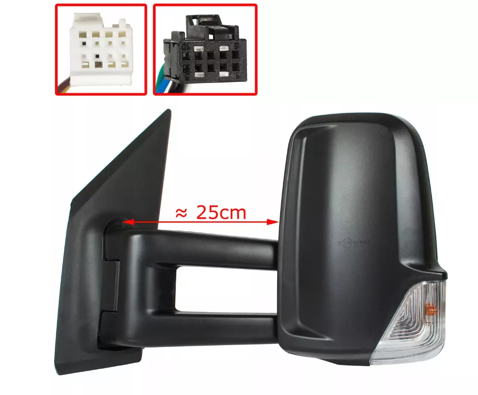 Зовнішнє дзеркало довге ліве 2 роз'єма 5+2 pin електричне Mercedes Sprinter W907 W910 замінник по якості порівняний з оригіналом. НОВЕ